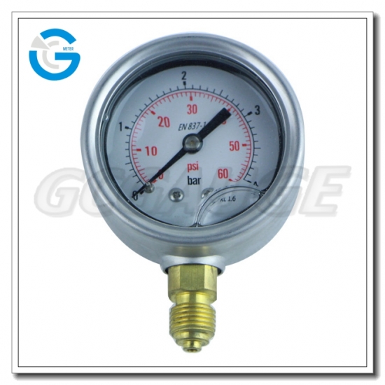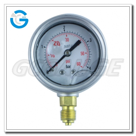 2.5 inch bottom connection bayonet ring pressure SS case brass internal gauges liquid,which is used forOutdoor and severe ambient and process conditions; Use where harmful vibration and pulsation are present.