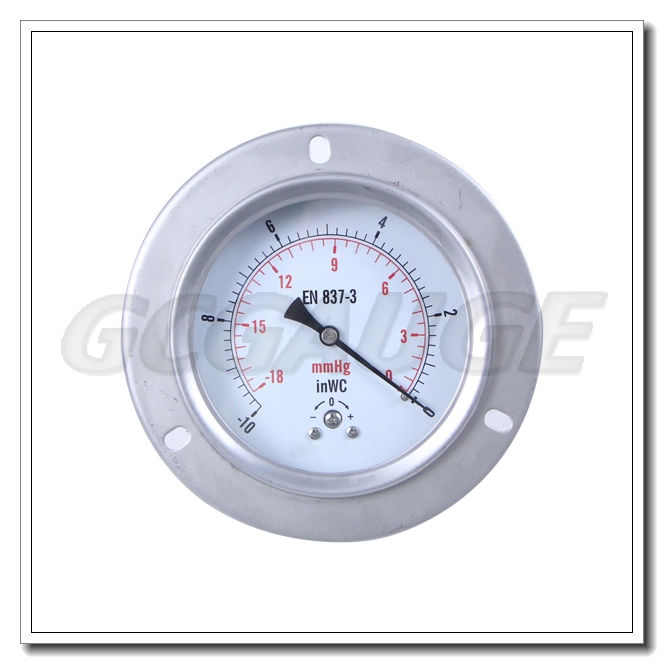 Lower or back entry;panel mount or surface mount.4 Inch pressure gauges mbar back connection with flange