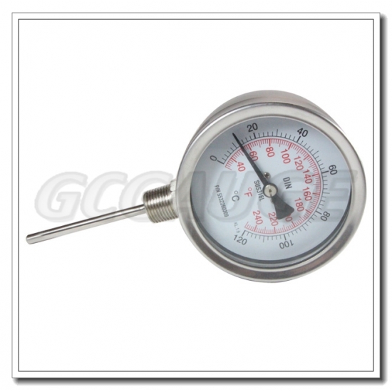 For bimetallic thermometers, we have crimped type, bayonet type for your choice, also there're bottom connection stem thermometers, back connection stem thermometers andadjustableconnection stem thermometers for option.Size: 2", 2.5“, 3”, 4", 6".
