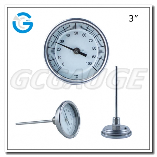 Bimetal industrial temperature thermometers 3 inch dial face with stainless steel back connection