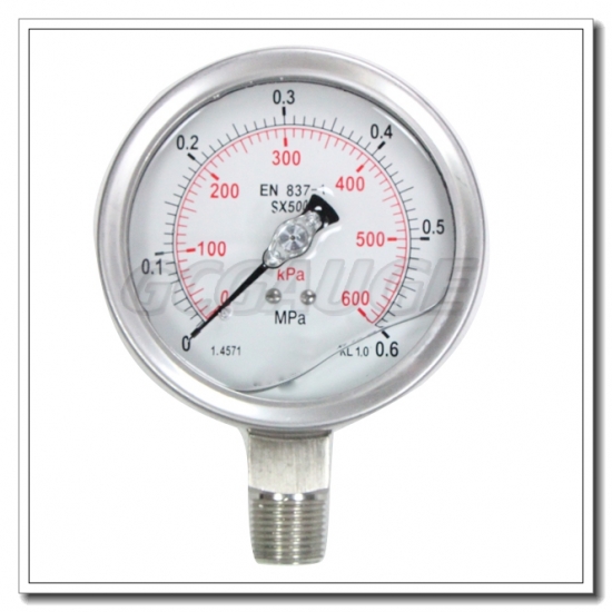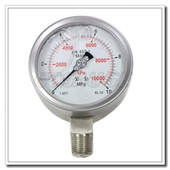 Bourdon tube liquid filled stainless steel pressure gauges with 4inch 100mm dial bottom connection